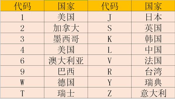 1、第1~3位字符分别代表车辆的生产国家、制造商、汽车类型;