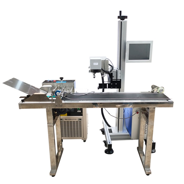 全自动生产日期喷码机飞行激光喷码机,其主要优势打标全程步骤完全脱离人工操作,无须人工监控守候,速度快,精密度高,通过程序设置直接将产品传送到指定的位置,完成打标工序后,随着传送带再传送到指定位置的。